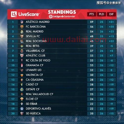 1、这是最新的西甲积分榜。西班牙甲级联赛共20支队伍参加,采取主客场制,共有38轮。胜一场得3分,平是1分,负则0分。