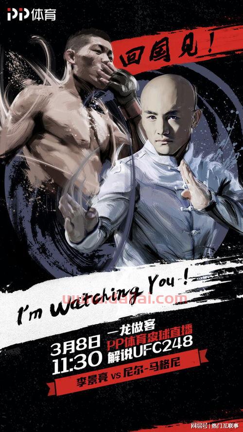 2、PP体育和咪咕视频都能看。PP体育和咪咕视频都免费直播ufc比赛。UFC,中文意思是终极格斗冠军赛,是目前世界上最顶级和规模最庞大的职业MMA(综合格斗)赛事。