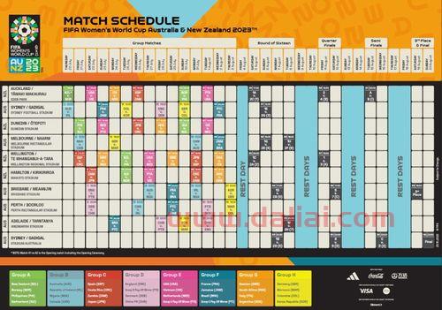 1、2023年FIFA女足世界杯详细赛程已公布,以中国女足为例,三场小组赛分别在2023年7月22日、7月28日以及8月1日进行。2023年女足世界杯在7月20至8月20日进行。其开幕式将在新西兰举行,决赛将在悉尼举行。
